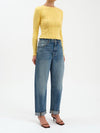 The Venice in The Blues is a high rise barrel leg featuring a pre-rolled cuff for a laid-back look.